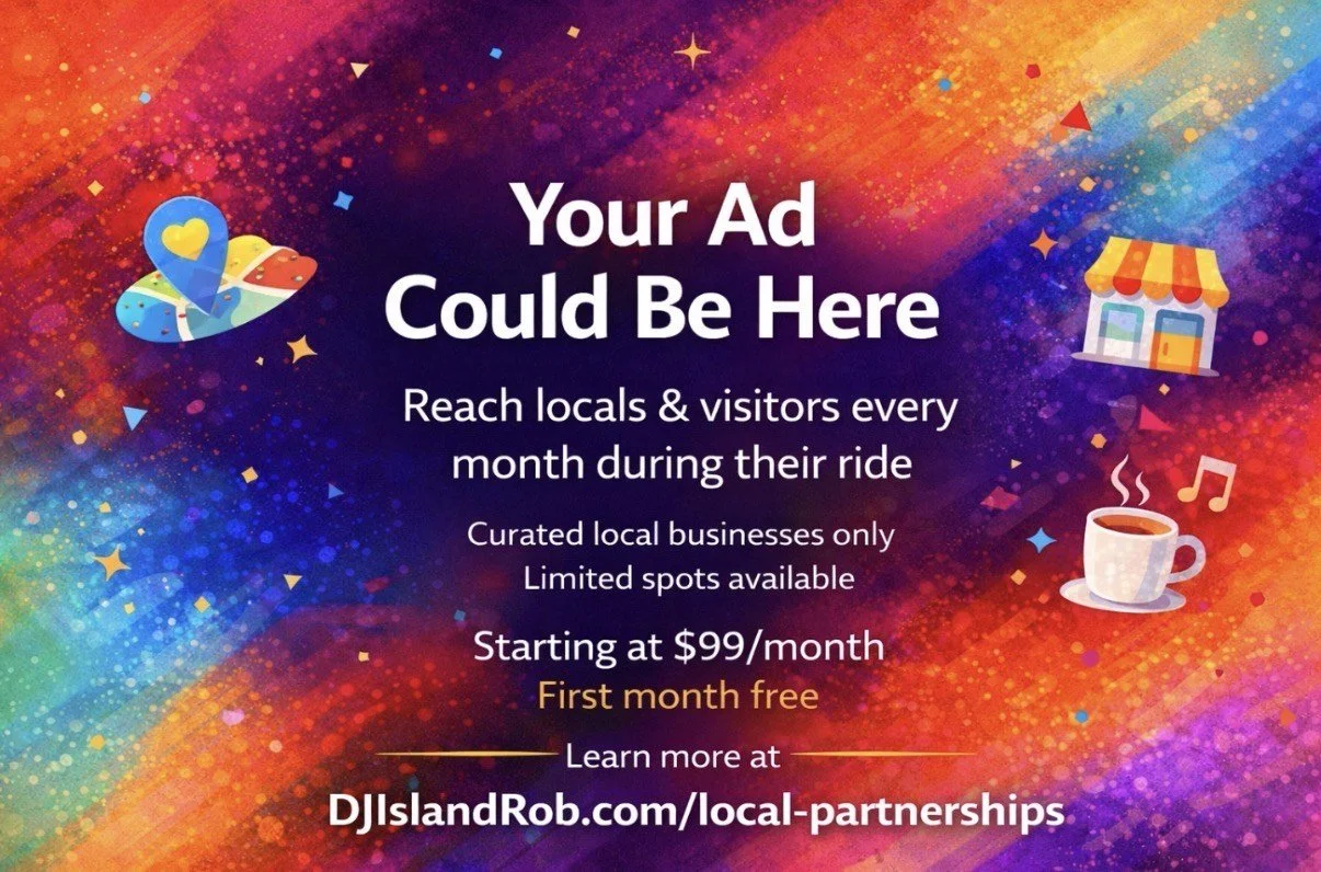 Minimum 4 month, with the first month free! Custom promotional ideas welcome! Email robert@djislandrob.com for more details.